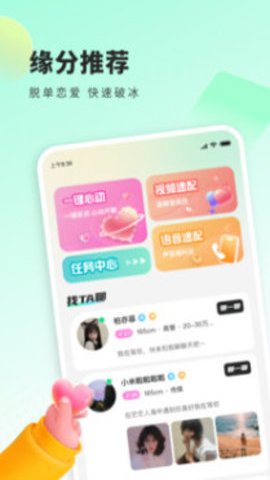 4、来语还有一个功能是缘分推荐,它会精选出优质的在线用户,并智能推荐给你,助你找到有缘人。