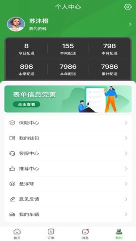- 个人中心:在个人中心,用户可以查看自己的日常配送订单和收益余额,随时了解自己的工作情况。