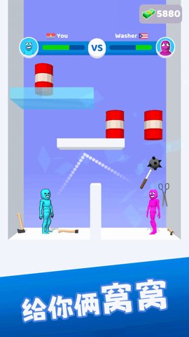 1、玩家需要将布娃娃操作得灵活,串起敌人的布娃娃或张开手击打它们,在摔倒时用不屈不挠的四肢一枪或一击将它们摧毁。