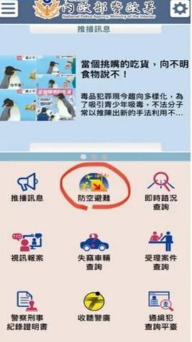 1、警政服务app还提供了防空避难功能,用户可以通过一键搜索附近的防空洞,了解附近的避难场所。