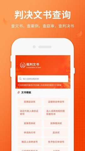 2、最近,该应用还新增了一些功能,如裁判、判决、庭审、案例公开、判决书、庭审公开和文书网司法案例大全等文书案例。