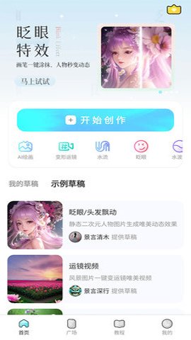 2、当用户进入首页时,就可以看到许多热门的特效,只需点击“开始创作”即可开始编辑照片。