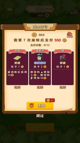 1、结合三国经典故事,让典故相关符号和物品在不断旋转中发挥出最强的组合。