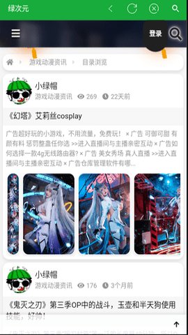 3、除了视频和漫画资源,绿次元社区还提供了各种ACG相关内容,包括游戏、图片、宅文等。