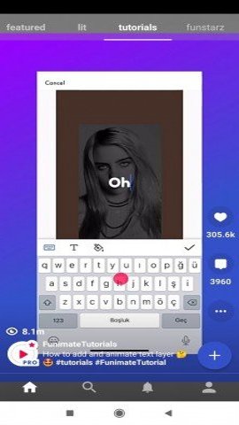 3、除了表情符号和贴纸,Funimate中文版App还用户在视频中添加文字。