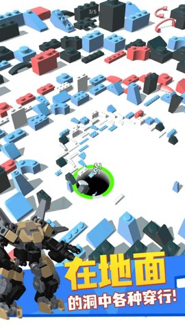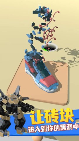 3、玩家需要掌控一个黑洞,吞噬城市中的砖块并组装模型来通关。