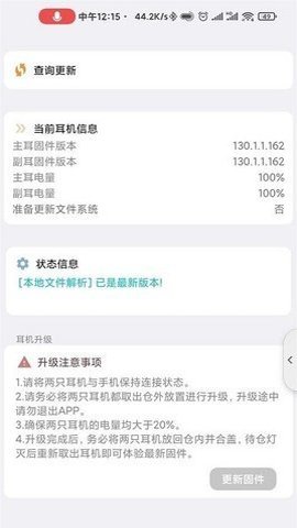 1、用户在升级耳机时,不再需要进行繁琐的操作,只需按照软件中的提示进行一键升级即可。