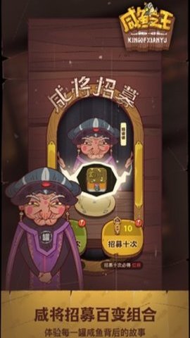 咸鱼之王是一款魔性搞怪画风的休闲放置挂机游戏,玩家需要使用账号登陆才能进入游戏。玩家将扮演阿咸,指挥自家厨房里的三国咸鱼们排兵布阵,抵御邪恶咸鱼们的入侵。