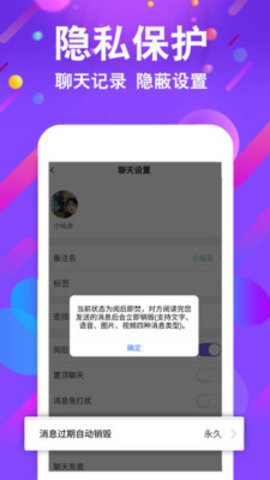 1、除了圈子功能,面具舞会App还有强大的阅后即焚功能,可以让用户的聊天信息更加私密。