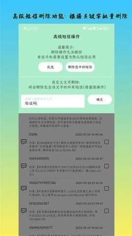 1、这款应用还提供了批量短信清理功能,用户可以根据关键字一键删除垃圾短信。