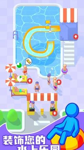 4、同时游戏采用休闲的放置玩法,你只需要建立好你的水上乐园并收取门票,顾客们就会自己进去玩耍,无需你过多操心。