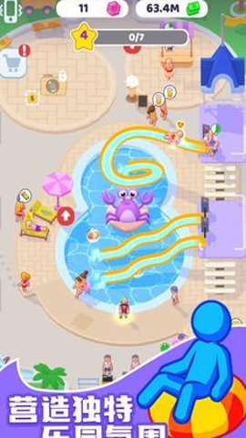 1、玩家需要经营属于自己的水上乐园,取悦游客并迅速扩大游乐园规模。