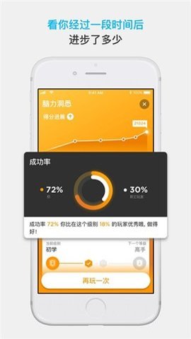 1、这样,用户可以清楚地看到自己经过一段后的进步程度,以及自己的脑力技巧锻炼情况。
