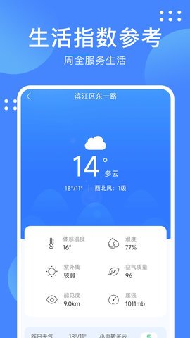 1、最美天气通app还提供了一系列实用的生活服务,如衣食住行等方面的信息,让用户的生活更加便利。