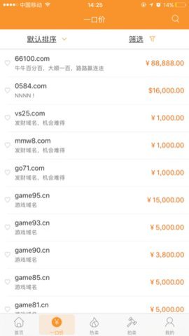4、金名网app支持各个注册商域名的发布出售、议价、一口价等交易类型。