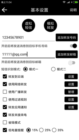 双卡助手手机版的亮点在于其简洁友好的用户界面和易于操作的设计。软件的界面经过精心设计,用户可以轻松找到所需功能,适合不同年龄段的用户使用。双卡助手还支持多种转发规则设置,用户可以根据自己的需求和习惯进行个性化配置。这种灵活性不仅提高了用户的工作效率,也确保了用户不会错过任何重要信息,保持及时沟通。