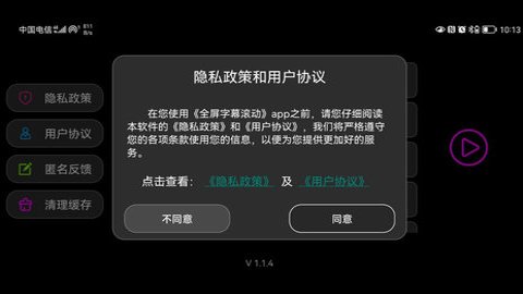 2、最近,全屏字幕滚动应用进行了一次升级,更新了用户隐私协议,提醒用户关于广告的说明,并新增了网络状态申请的说明。