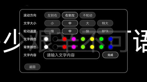 3、你可以根据自己的需求,自定义字体的滚动速度,还可以选择不同的字体大小和字体颜色,以及背景颜色。