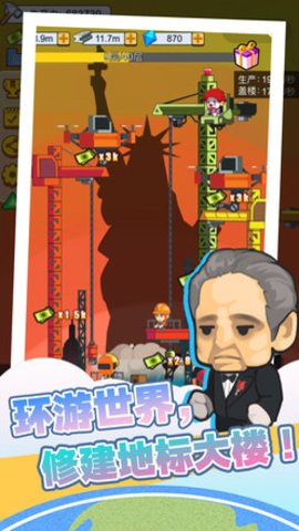 2、玩家需要通过不断学习建造技巧,招募员工,经营商铺,挑战更高层楼,来获得更多的金钱和乐趣。