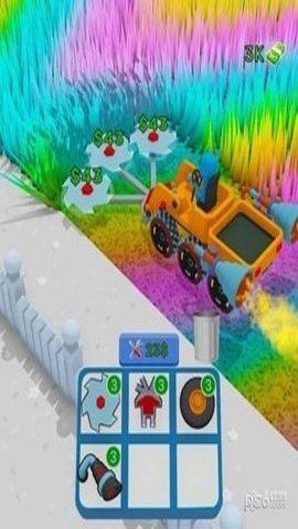 3、玩家可以逐渐解锁更加强大的部件,使收割机的割草效率更高。