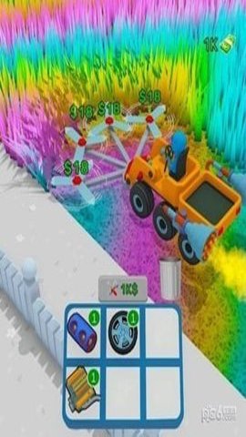 4、游戏中的收割机合并机制极具创意,玩家需要巧妙地合并机器来割草。