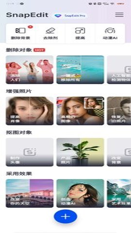 SnapEdit是一款功能独特而强大的应用软件,它是一款AI智能图像编辑软件,可以帮助用户轻松进行照片处理,并且成品效果非常自然,没有一点违和感。