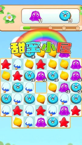 3、甜蜜小屋是一款画面精美、玩法简单、休闲有趣、挑战有惊喜的经典三消游戏。