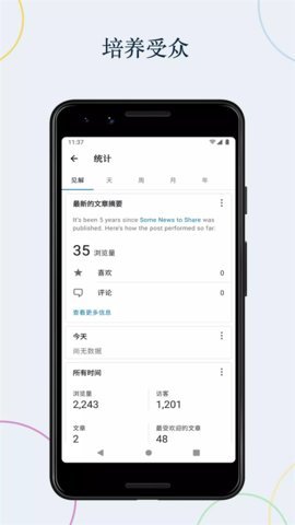 3、通过这个应用,您可以随时查看您网站的统计数据,了解您的站点动态。