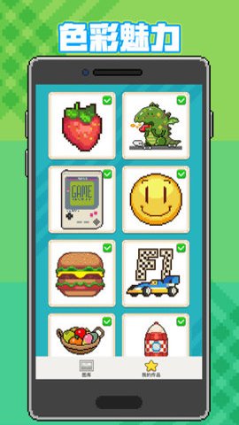 3、同时它还具有自由搭配颜色、创意填色和DIY功能,让您可以展现自己的像素画才艺。