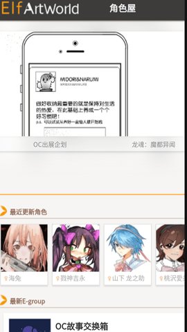 2、在首页上,你可以了解到ElfArtWorld最近更新的角色和作品,掌握最新的创作动态。