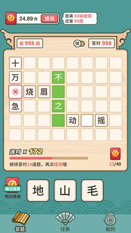 3、同时成语梦长安红包版也是一款拓宽文化视野的游戏,可以让玩家深入了解古代文化和成语的寓意,为学习和生活带来更多的乐趣和启示。