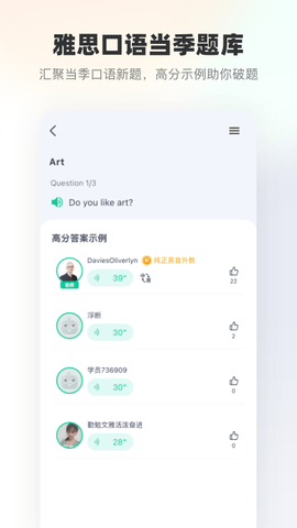 除了写作练习,应用还提供外教口语答题音频,让学生听取超好听的英音答题范例和清晰的思路引导。每道题目都有解答,帮助学生更好地准备口语考试,提高口语表达能力。应用还提供口语考情实时回顾,让学生了解当季口语话题库,提前了解考试内容,避免临时抱佛脚,提高考试的准备效率。