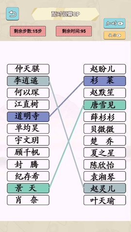 1、匹配达人还是一款CP配对模拟器,玩家可以选择自己喜欢的人物名字进行连线,组成自己喜欢的CP配对。