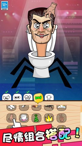 1、你可以选择马桶人的头部、眼睛、嘴巴以及各种装饰配件,还可以为它选择一个与众不同的身体,使它在众多马桶人中脱颖而出。
