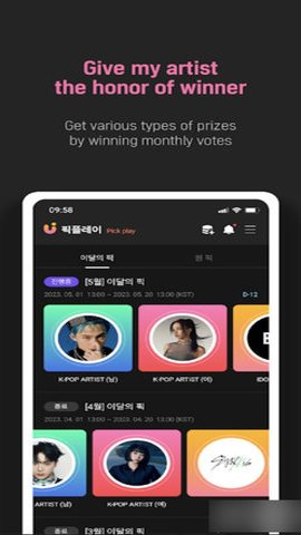 1、UPICK投屏还推出了每月的PICK投票活动,供粉丝们对K-pop艺人和演员等进行人气投票。