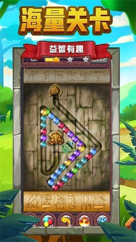 3、画面出色的经典祖玛消除游戏,游戏玩法简单容易上手,同时还拥有华丽的界面和全新的地图,打破了以往祖玛类游戏只能单机的模式。