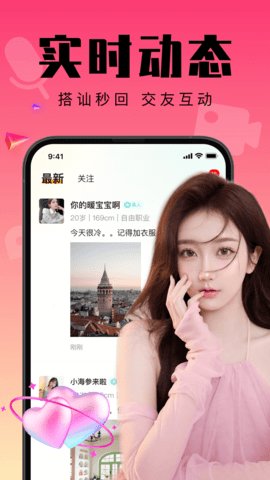 5、附近寻伴聊天交友是一款集交友、恋爱社交于一体的应用,它提供了丰富的功能,让你能够随时随地与附近的异性好友进行交流。