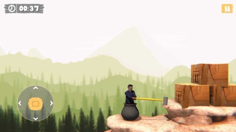 2、游戏的操作非常简单,通过使用锤子蹭地来获得跳跃的动力,让角色在树枝和石头之间攀越。