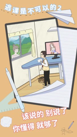 逃课是不可以的2是一款游戏,游戏的设定很像猫和老鼠,玩家需要扮演一名老师,跟爱逃课的学生斗智斗勇,把他擒拿住。但是调皮的学生为了逃课可以说是不择手段,他会想方设法躲在任何地方,想要抓到他就不能单用常规的思维。