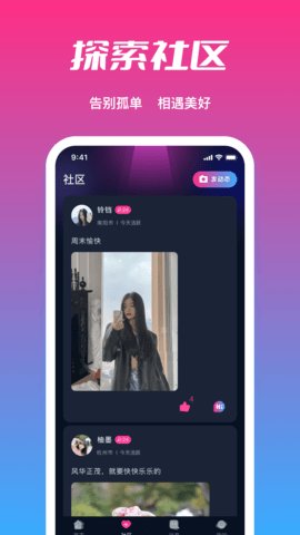4、除了交友功能,附近轻甜探约还支持用户分享自己的生活动态。