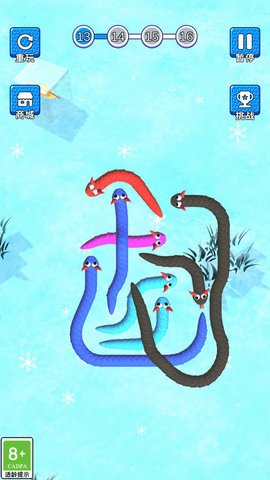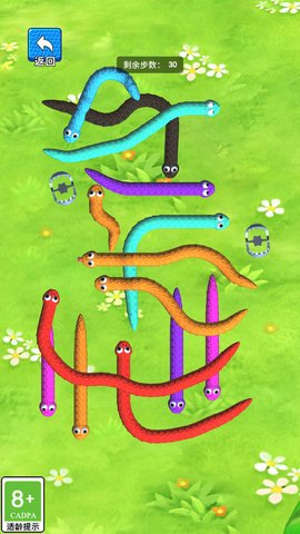 2、确保按正确的顺序挑选蛇并将它们全部保存以通过关卡。