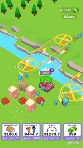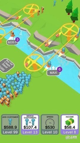 2、同时玩家还可以购买和合并游戏中的房屋,以获得更多的客户。