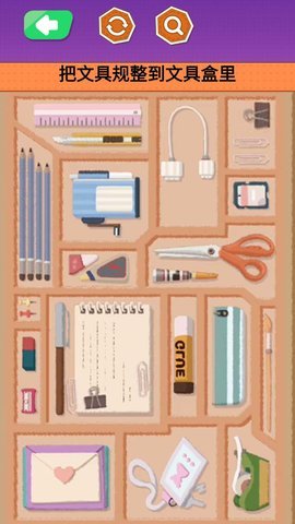3、通过玩这款游戏,玩家能够学习到将文具摆放整齐,找到合适的位置,让每一件文具都能够有自己的归属。