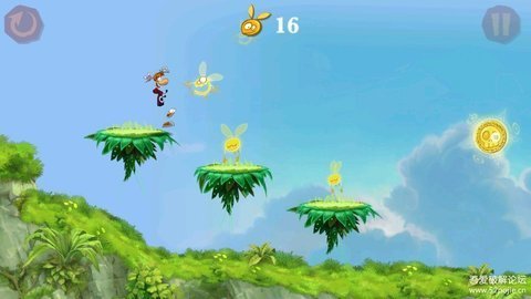 1、游戏的触摸屏控制非常流畅,玩家只需要在合适的时候触碰屏幕,让雷曼做四种动作:跳跃、飞行、爬墙和拳击。