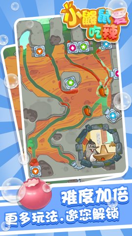 2、但是下水道中有着各种各样的障碍阻挡了小鼹鼠吃火锅,小鼹鼠需要玩家的帮助,帮助他清理各种障碍,将辣椒导入浴缸中。