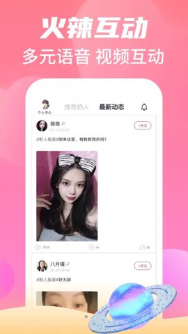 3、倍甜集同城附近陌生人、语音、视频互动、热门动态和多元语音匹配速聊等功能于一身,让用户可以根据自己的爱好和需求,轻松找到合适的聊天对象,把握邂逅的机会。