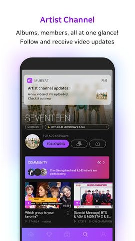 2、对于全球的BTS、EXO、SHINee、MONSTAX、SEVENTEEN、BIGBANG等KPOP粉丝来说,mubeat也是一个不可错过的应用。