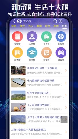 3、用户还可以在线查阅中国十大品牌、趣闻十大、知识十大等TOP10数据知识体系梳理,获取各类排行榜的精华内容。
