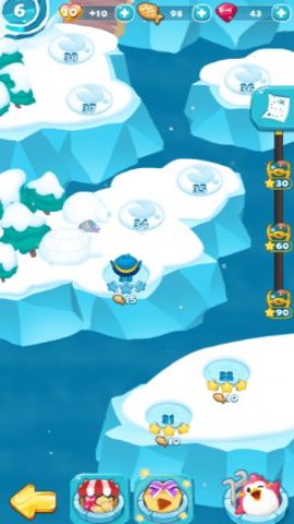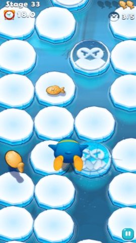 3、我们需要注意平台上的小企鹅,虽然它们很多,但是我们需要控制自己的企鹅跳跃才能过关。