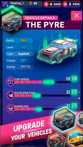 1、玩家需要扮演氮气赛车经理,通过灵活指挥赛车运行和合理部署战略计划,不断升级赛车性能,从容面对各种挑战。